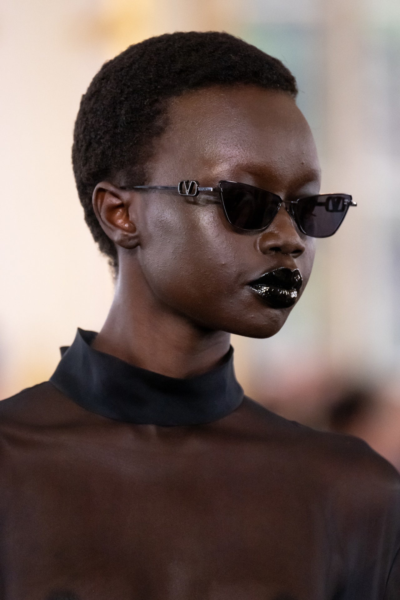 Осень – именно то время, когда хочется глубокого цвета, а кому-то и почувствовать себя роскошной вампиршей. Как на счет черных губ? Заманчиво, не правда ли?! Но ведь хочется больше лоска. Как хорошо, что в этом сезоне мы видим их глянцевый вариант. Спасибо, Valentino, за идею.